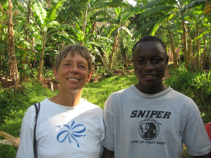 Before Britta left two weeks ago, she came to visit us for four more days, and on one of those days we went to 'the village'. A very nice day, a lot of people talked to us, and she met L: the business with his sister had been settled, she had left again as unexpectedly as she had turned up, and it now seems that he is not the person to be blamed. Britta took a lot of pictures - like on her whole trip, too many of children. ;-) I am very happy that she had such a good six weeks in Rwanda and Uganda, with no bad experiences at all; other people may have been surprised by her independent travelling, but I was not.