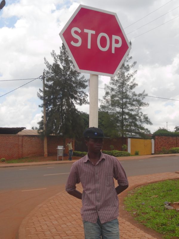 In case any of my friends/readers has missed updates on the Kigali road system, ;-) I can report that various sets of traffic lights have been newly installed, or reinstalled, apparently from China, although the timing of the phases is not quite right yet; that new traffic signs have appeared in many many places, including a helpful one that says "Bridge"; that we have all received text messages on our phones, in English and in Kinyarwanda, warning us that using the phone while driving is an offence; that little lights, yellow on the right, red on the left and other colours in other places, are now helping drivers on the main roads to steer clear of the kerb; and that new buses, very similar to the ones one sees in European cities, but apparently also from China, have just been introduced by one of the local transport companies. However, a major problem that remains is lack of lane discipline, even among the school bus drivers.