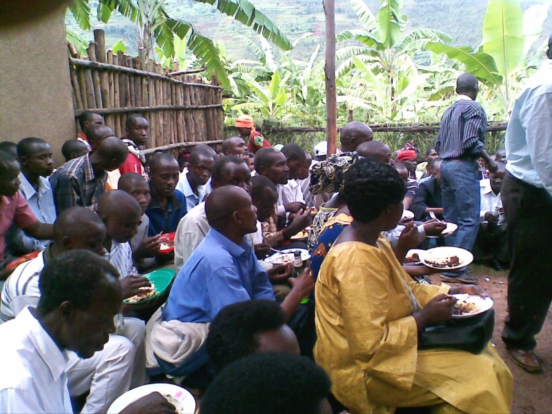 The other sad thing, smaller in a way but also larger: Modeste from the bar was away for a few days because of trouble at home. I have mentioned the Gacaca courts before, an old tradition used recently to help deal with the consequences of the genocide. Apparently his father had been before the courts some years ago, and been found not guilty. But recently a neighbour had lost a case, relating to property that had been taken from the home of a genocide victim in the village, and had been told to pay RFr 2,000,000. This they had no means of paying on their own, without selling all their land, so they implicated other people who they said had been there, so as to divide the sum they had been made to pay, and one of these was M's father, who suddenly found himself liable for RFr 120,000 (= $ 200) and part of his land confiscated because he could not raise that kind of sum. Sorry. Sadly, (for various reasons) the bar where he was working sent M away a few days later, unrelatedly and not for anything he had done wrong. After checking with P and B that the story was coherent and plausible, we had M stay until he left the next day, and I did help out.