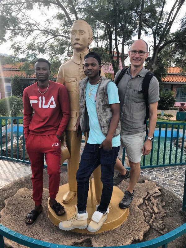 Not so much has happened, but time has been passing quickly. – I was pleased that my birthday passed so well, i.e. mostly unobserved, although we did have some wine that evening at dinner. I have been pleased with the way M, in the past the most unreliable of the people I know here, has been continuing to work and starting to stand on his own feet. And I was very pleased, not to say impressed, with the offer of one not-at-all-rich friend to use his savings to pay the fees for a close friend of his and of M's, so I decided to contribute as well; (I am not sure though if I/we can keep it up: that guy may have to take a year off after this one.) Talking of wine, last 'term' P discovered a very nice, very smooth, dark brown banana wine that he can get in town, quite different from the banana beer that people drink in the village when they can't afford any other alcohol, which tends to be a bit rough. So we sometimes have that. And the liver paté that he sometimes brings also tastes very nice, and sometimes is part of my lunch, now that E has gone to study and I more often than not take care of myself – almost like my dinner in Berlin. And almost precisely a year after my/our last visitors from Berlin, Kado came to visit for a few days, while on holiday in Tanzania, which is where he is originally from. It was easier to put him up in a nearby cheap (USD 17 per night) hotel, but we went to town together, E and M took him to the Genocide Memorial, he went with O to pass half a day with his football team in the village, and of course we talked a lot. |