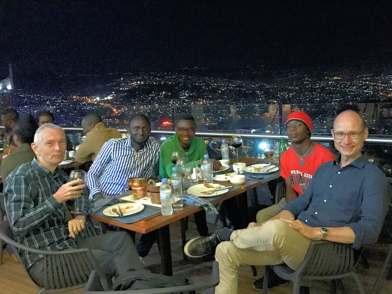 Having taught only four hours a week at AIMS (the African Institute for Mathematical Sciences) last term, English, with a little maths and programming thrown in, I am now teaching 8 hours a week again, and may get more time added when the AMMI (African Master's in Machine Intelligence) course starts in a couple of weeks. The teaching is again great fun, (although the replacement of coasters by big buses, in which one usually has to stand, on the route from Nyamirambo, where we live, to town has made the trip to and from work a bit longer and rather more tedious, less relaxed) and requires of course less preparation this time 'round. I am very pleased that the most competent tutor, Jessica from Northern Ireland, who was in a way holding everything together, has come back for a second year.